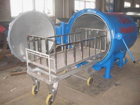 该“蒸箱”的使用特点是:适用范围广泛,既能湿热定型(将饱和蒸汽直接通入筒体内),又能干热定型(将饱和蒸汽通入夹套内,由筒体内壁散热)。大门